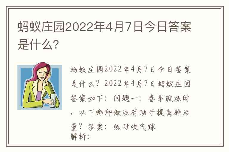 蚂蚁庄园2022年4月7日今日答案是什么?
