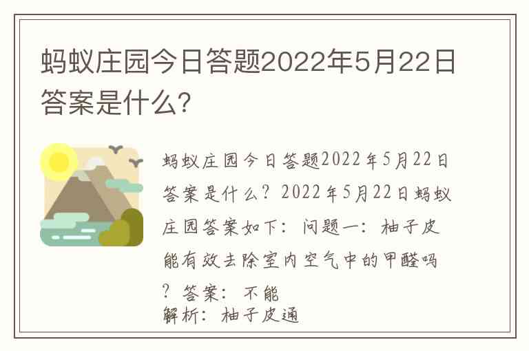 蚂蚁庄园今日答题2022年5月22日答案是什么?