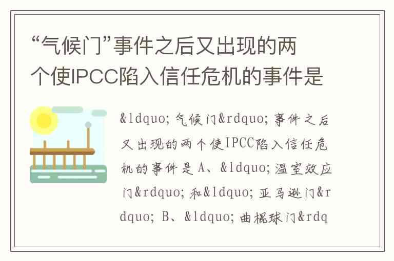 “气候门”事件之后又出现的两个使IPCC陷入信任危机的事件是 A、“温室效应门”和“亚马逊门” B、“曲棍球门”和“亚马逊门” C、“冰川门”和“喜马拉雅门” D、“冰川门”和“亚马逊门”
