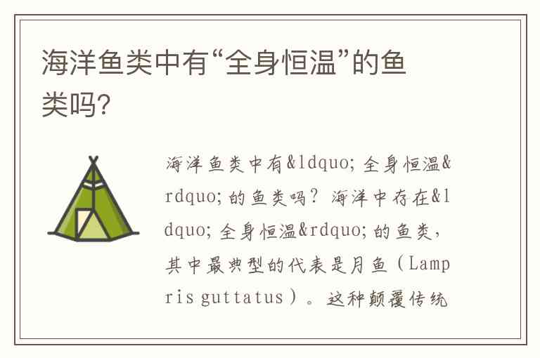 海洋鱼类中有“全身恒温”的鱼类吗?