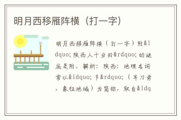 明月西移雁阵横(打一字)