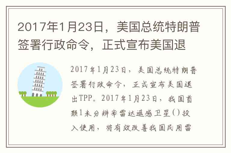 2017年1月23日,美国总统特朗普签署行政命令,正式宣布美国退出TPP。2017年1月23日,我国首颗1米分辨率雷达遥感卫星( )投入使用,将有效改善我国民用雷达卫星数据长期以来依赖进口的现状。