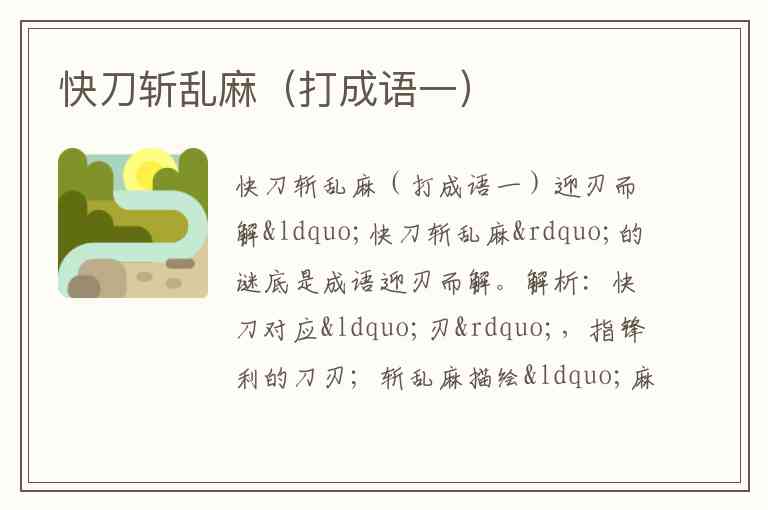“快刀斩乱麻”的谜底是成语迎刃而解。