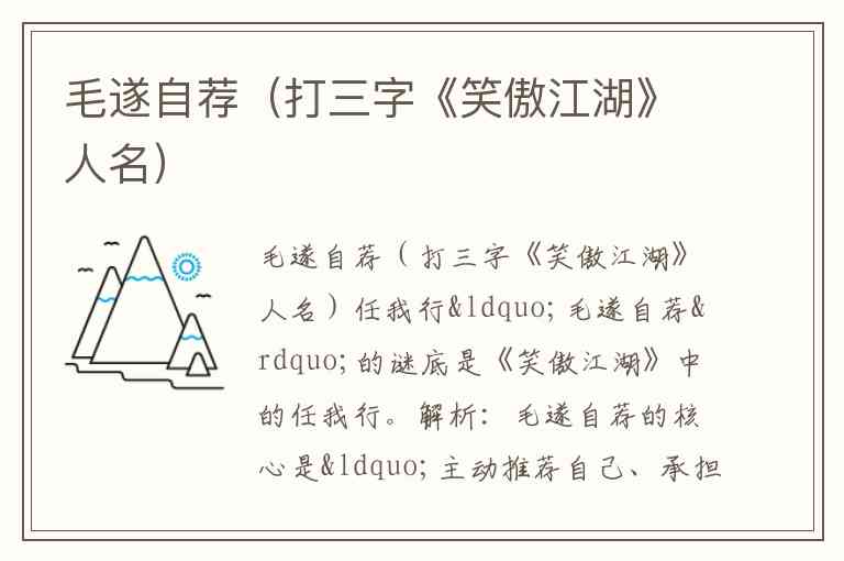 “毛遂自荐”的谜底是《笑傲江湖》中的任我行。
