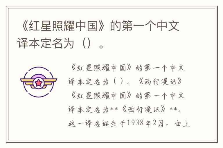 《红星照耀中国》的第一个中文译本定名为**《西行漫记》**。这一译名诞生于1938年2月,由上海“复社”组织的十二位译者在胡愈之主持下完成,是特殊历史环境下的策略性选择。