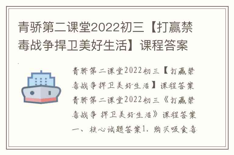 青骄第二课堂2022初三【打赢禁毒战争捍卫美好生活】课程答案