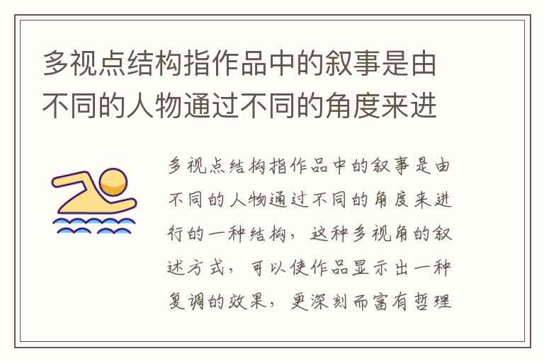 多视点结构指作品中的叙事是由不同的人物通过不同的角度来进行的一种结构,这种多视角的叙述方式,可以使作品显示出一种复调的效果,更深刻而富有哲理的展示叙述者与事物的关系。( )