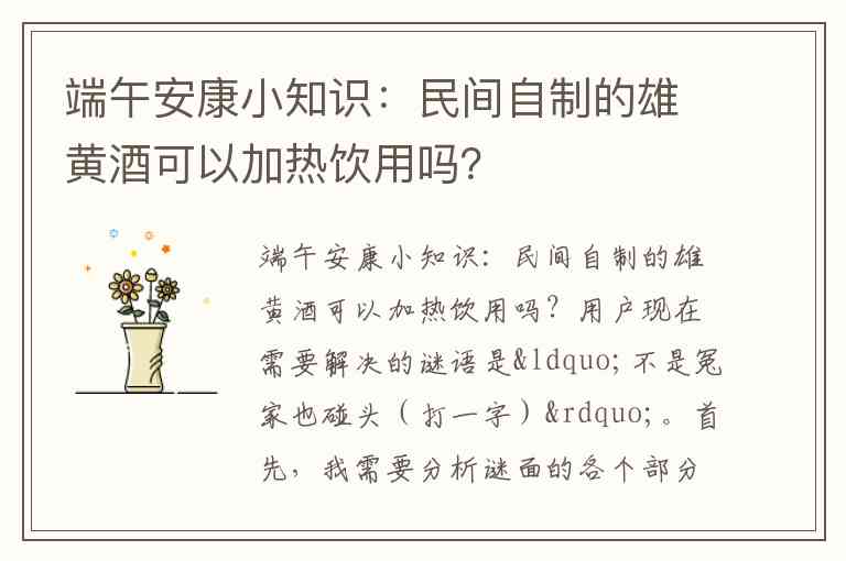 端午安康小知识:民间自制的雄黄酒可以加热饮用吗?