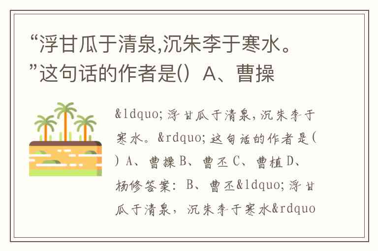 “浮甘瓜于清泉,沉朱李于寒水。”这句话的作者是() A、曹操 B、曹丕 C、曹植 D、杨修