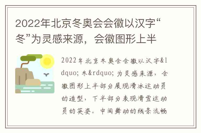 从书法笔触到色彩搭配,从运动员剪影到节日意象,北京冬奥会会徽以极简设计承载了丰富内涵——它是中国传统文化的现代表达,也是奥林匹克精神的东方诠释。当“冬”字在全球视野中舞动,世界看到的不仅是一届体育盛会,更是一个文明古国与现代世界的深情对话。