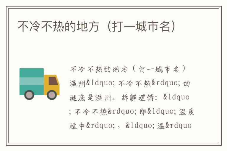 从字面猜想到地理验证,“温州”的谜底既体现了汉字的表意功能,又暗含对城市气候特征的精准概括——仿佛“温”字天生为这座城市而生,让“不冷不热”的谜面有了唯一且贴切的答案。