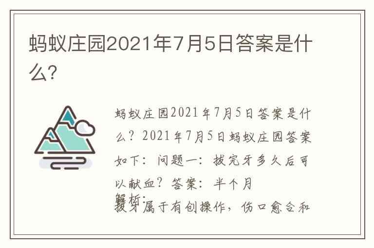 蚂蚁庄园2021年7月5日答案是什么?