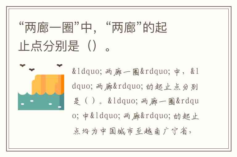“两廊一圈”中“两廊”的起止点均为中国城市至越南广宁省,具体为:昆明-广宁和南宁-广宁。