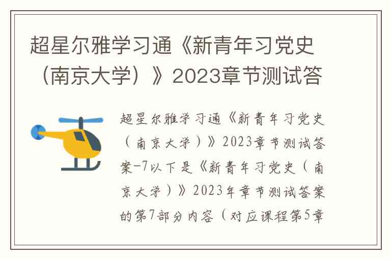 超星尔雅学习通《新青年习党史(南京大学)》2023章节测试答案-7