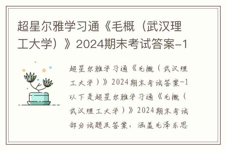 以下是超星尔雅学习通《毛概(武汉理工大学)》2024期末考试部分试题及答案,涵盖毛泽东思想、社会主义改造、改革开放等核心知识点,供复习参考: