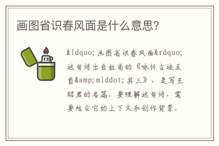 “画图省识春风面”这句诗出自杜甫的《咏怀古迹五首·其三》,是写王昭君的名篇。要理解这句诗,需要结合它的上下文和创作背景。