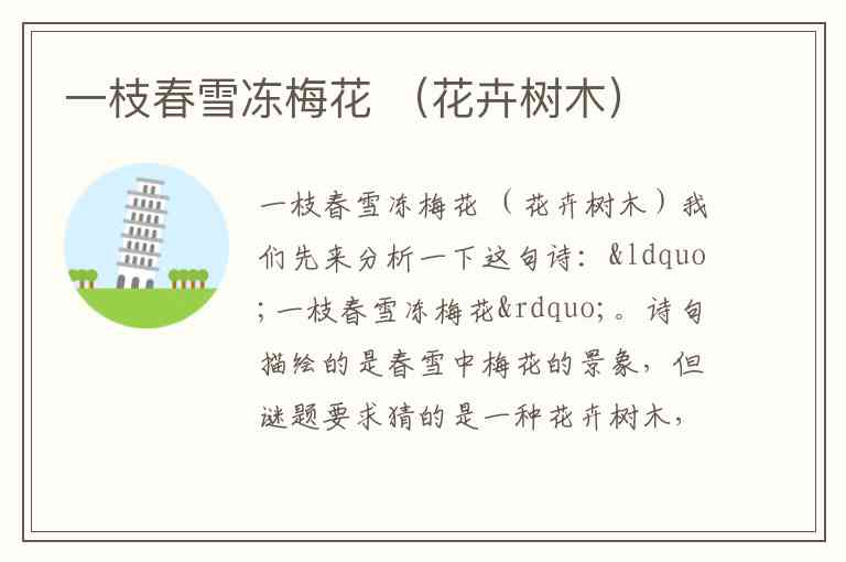 诗句描绘的是春雪中梅花的景象,但谜题要求猜的是一种花卉树木,所以不能直接答“梅花”,因为谜面里已经出现了“梅花”,谜底一般不会直接重复。