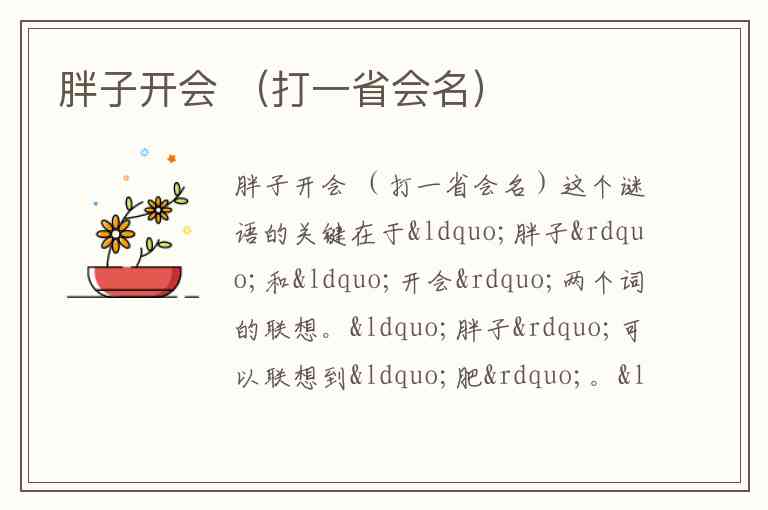 这个谜语的关键在于“胖子”和“开会”两个词的联想。