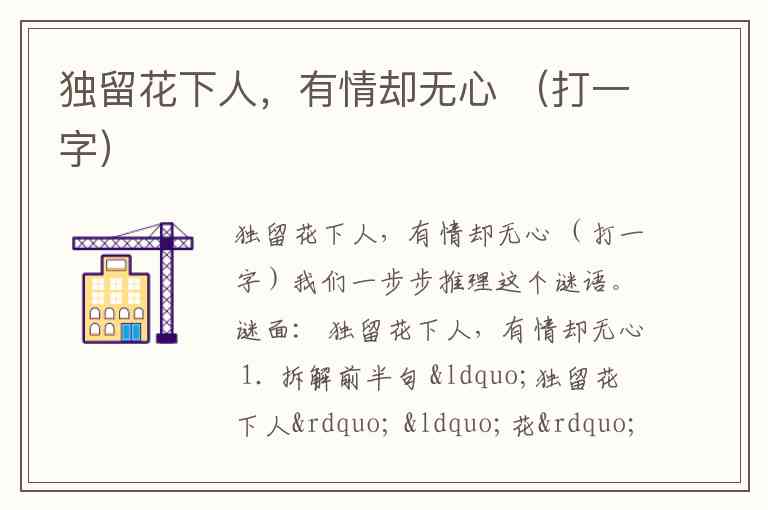 谜面: 独留花下人,有情却无心 1. 拆解前半句 “独留花下人” “花” 可以拆成 “艹” 和 “化”。