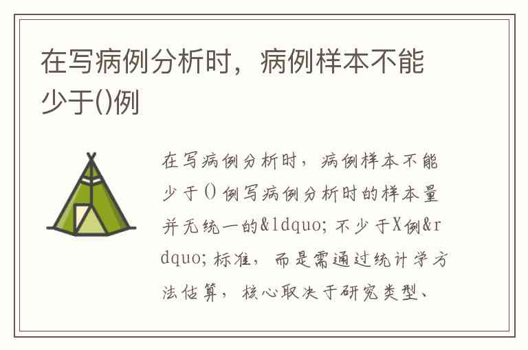 写病例分析时的样本量并无统一的“不少于X例”标准,而是需通过统计学方法估算,核心取决于研究类型、效应值、检验水准等因素。例如横断面调查可能需要数百例,而匹配病例对照研究可能每组需约300例。