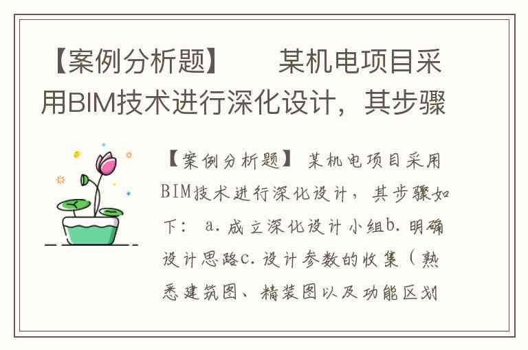 【案例分析题】 某机电项目采用BIM技术进行深化设计,其步骤如下: a.成立深化设计小组b.明确设计思路c.设计参数的收集(熟悉建筑图、精装图以及功能区划d.领会业主方的技术要求,对比国家设计及施工规范标准、不违背国家强制性标准,了解关键设备及材料的型号规格、安装工艺要求等e.明确及统一各专业的绘图标准和图层、颜色及深化程度f.提出深化设计大纲g.各专业互相提供设计参数并提出配合条件h.将各专业深化模型出的碰撞报告及安装所需的区域净高分析送业主和顾问审批i.绘制各专业深化设计模型j.审批通过后修改机电综合模型k.原设计位批准l.机电综合模型与精装修(土建、结构模型)核对无误后送业主和顾问审核m.审批通过后生成施工模型并分发各相关专业施工班组n.配合施工及对施工过程中发现的问题及时反馈并修改模型o.对现场施工人员进行机电深化设计模型展示和施工工艺技术交底p.绘制竣工模型。 该项目运用BIM机电深化设计模型在施工阶段对设计方案的构造方式、工艺做法和工序安排进行优化,使深化设计后出具的模型完全具备可实施性,满足施工单位能按模型施工的严格要求;也通过对机电深化设计,充分详细的对复杂节点、剖面进行优化补充,对工程量清单中未包括的施工内容进行补漏拾遗,准确调整施工预算;补充、完善及优化,进一步明确机电与装饰、土建和幕墙等其它专业各自的工作面,明确彼此可能交叉施工的内容,为各专业顺利配合施工创造有利条件。 请至少说出机电深化设计在施工阶段可以完成的3项具体工作。