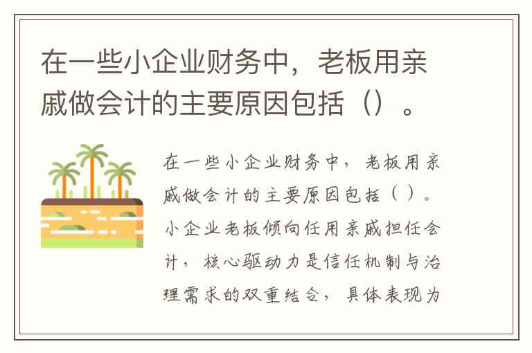 小企业老板倾向任用亲戚担任会计,核心驱动力是信任机制与治理需求的双重结合,具体表现为三大深层逻辑: