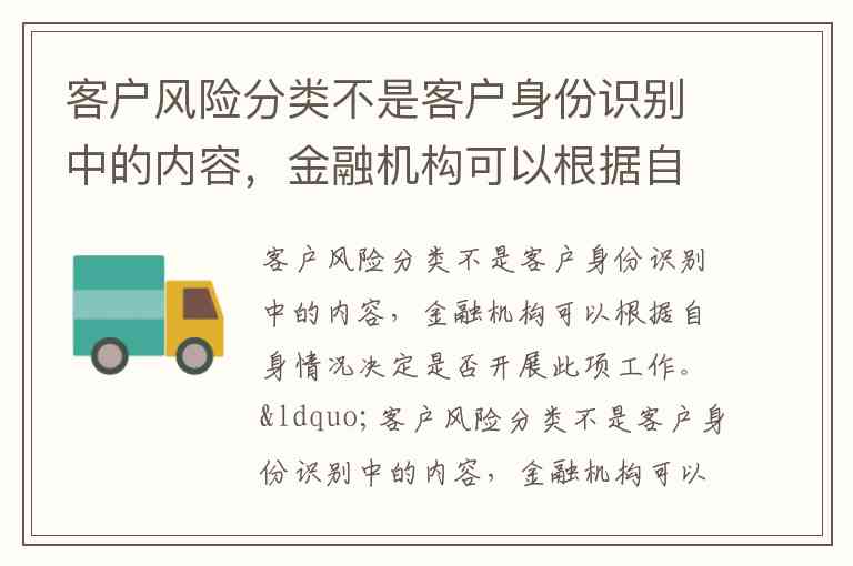客户风险分类不是客户身份识别中的内容,金融机构可以根据自身情况决定是否开展此项工作。