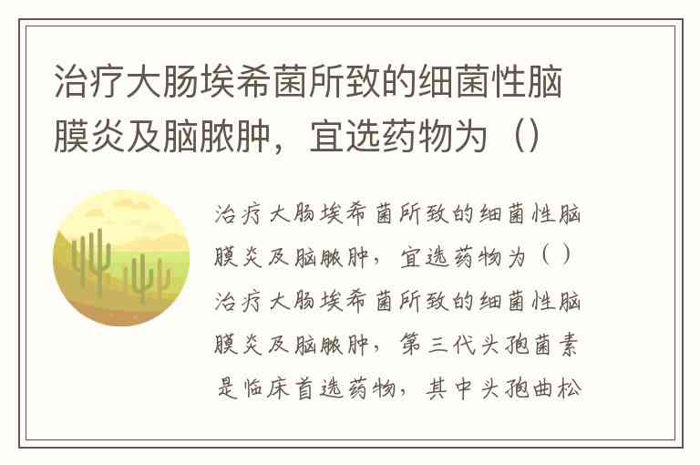 治疗大肠埃希菌所致的细菌性脑膜炎及脑脓肿,第三代头孢菌素是临床首选药物,其中头孢曲松 和头孢噻肟 因穿透血脑屏障能力强、抗菌活性高而被广泛推荐。