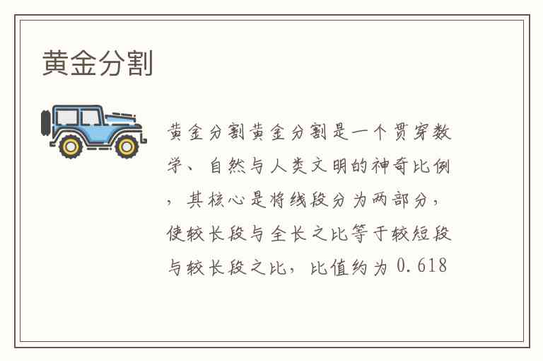黄金分割是一个贯穿数学、自然与人类文明的神奇比例,其核心是将线段分为两部分,使较长段与全长之比等于较短段与较长段之比,比值约为 0.618(或倒数1.618)。这一比例最早由古希腊数学家毕达哥拉斯学派在研究正五边形时发现,欧几里得在《几何原本》中将其定义为“中末比”,文艺复兴时期达·芬奇赋予其“黄金分割”的美名。它的数学表达式为 ,其中 ,是一个无限不循环的无理数。