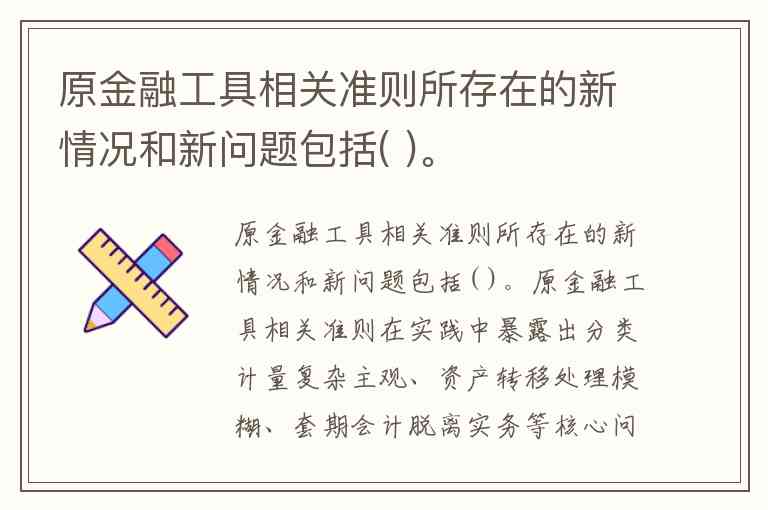 原金融工具相关准则所存在的新情况和新问题包括( )。