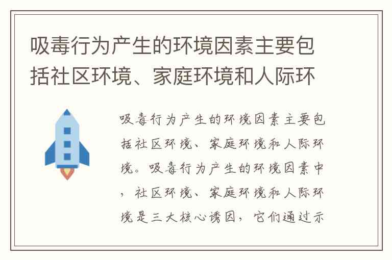 吸毒行为产生的环境因素主要包括社区环境、家庭环境和人际环境。