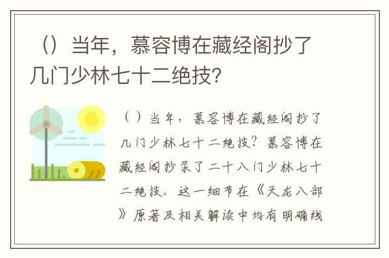 ()当年,慕容博在藏经阁抄了几门少林七十二绝技?