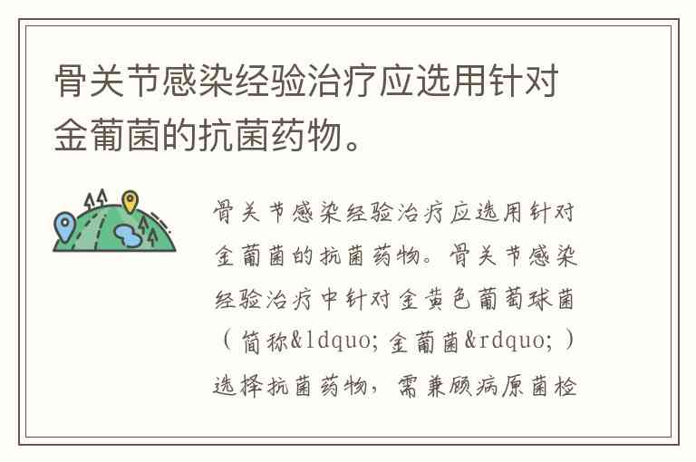 骨关节感染经验治疗应选用针对金葡菌的抗菌药物。