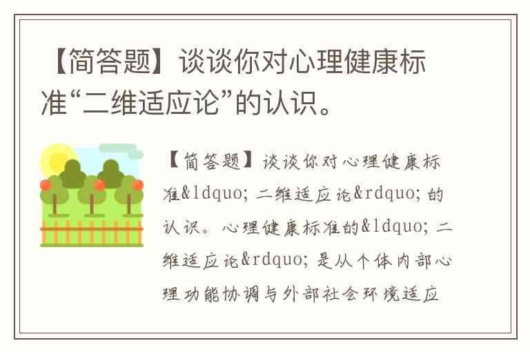 【简答题】谈谈你对心理健康标准“二维适应论”的认识。