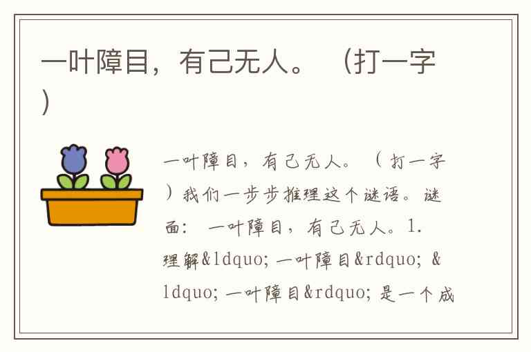 谜面: 一叶障目,有己无人。