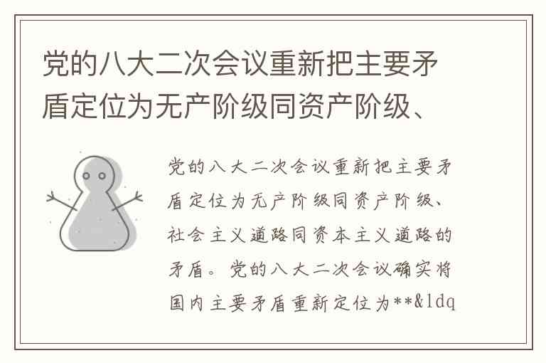 党的八大二次会议重新把主要矛盾定位为无产阶级同资产阶级、社会主义道路同资本主义道路的矛盾。