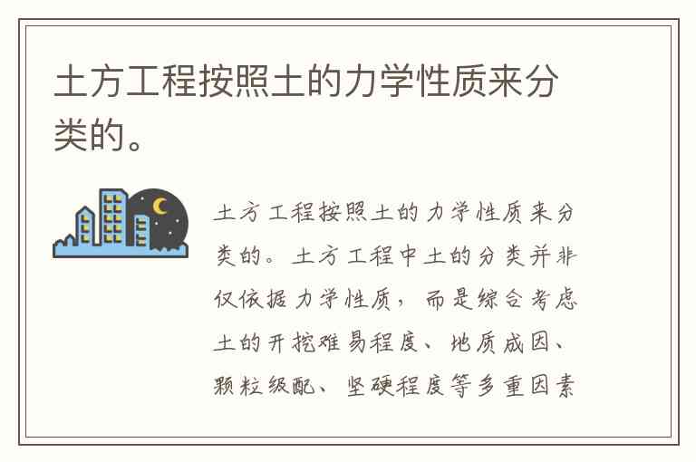 土方工程中土的分类并非仅依据力学性质,而是综合考虑土的开挖难易程度、地质成因、颗粒级配、坚硬程度等多重因素,其中力学性质(如压缩性、抗剪强度)是确定地基处理方案的核心指标,但分类体系更注重工程实用性。我国《岩土工程勘察规范》(GB 50021)和《建筑地基基础工程施工质量验收标准》(GB 50202)将土分为以下类别,力学性质在其中起关键但非唯一作用: