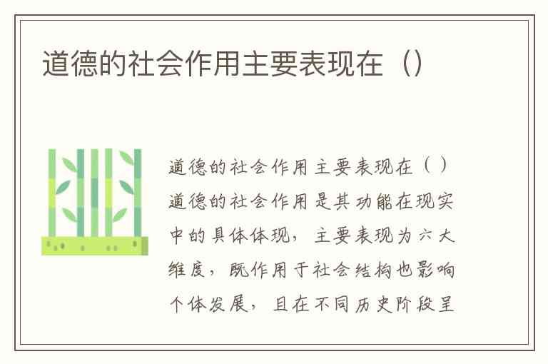 道德的社会作用是其功能在现实中的具体体现,主要表现为六大维度,既作用于社会结构也影响个体发展,且在不同历史阶段呈现性质差异。