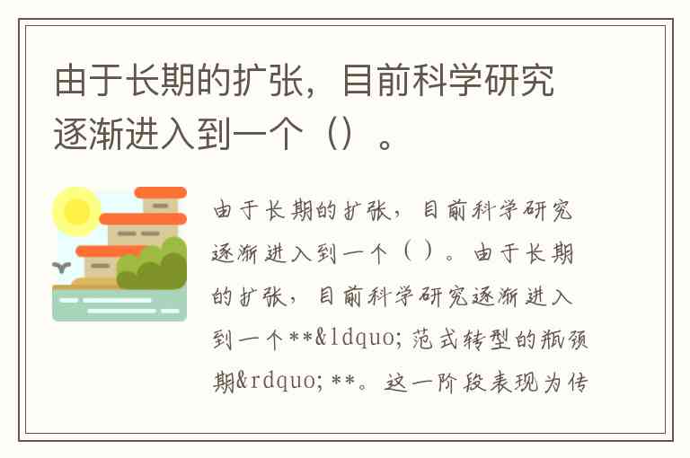 由于长期的扩张,目前科学研究逐渐进入到一个()。