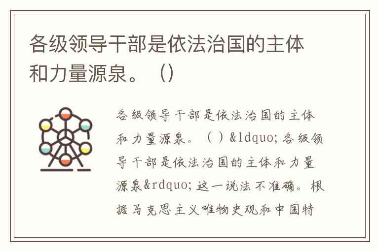 “各级领导干部是依法治国的主体和力量源泉”这一说法不准确。根据马克思主义唯物史观和中国特色社会主义法治理论,人民群众才是依法治国的主体和力量源泉,而领导干部是推进依法治国的“关键少数”,承担着引领示范和组织实施的重要责任,但并非主体力量。