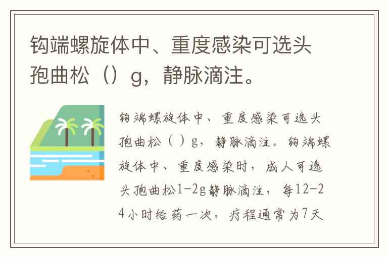 钩端螺旋体中、重度感染可选头孢曲松()g,静脉滴注。