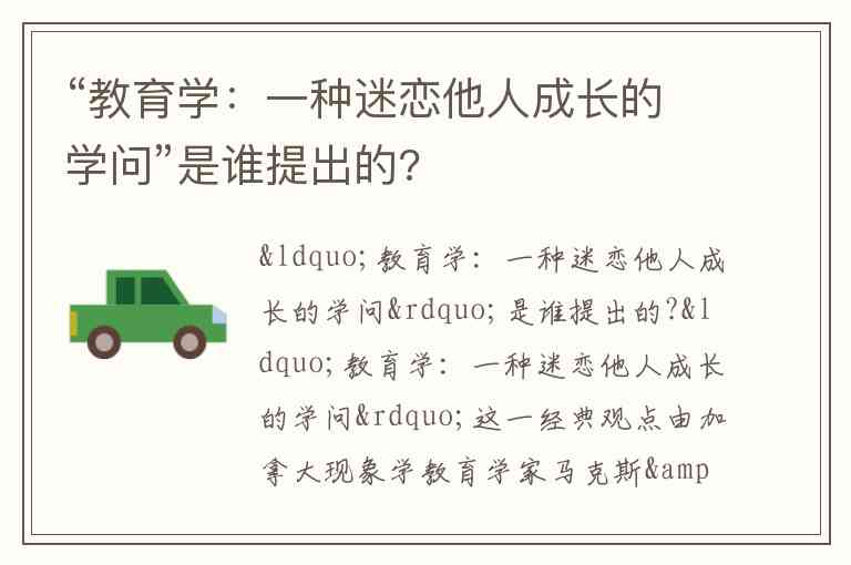 “教育学:一种迷恋他人成长的学问”是谁提出的?
