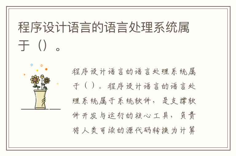 程序设计语言的语言处理系统属于系统软件,是支撑软件开发与运行的核心工具,负责将人类可读的源代码转换为计算机可执行的机器指令,主要包括编译器、解释器、汇编器和链接器等。