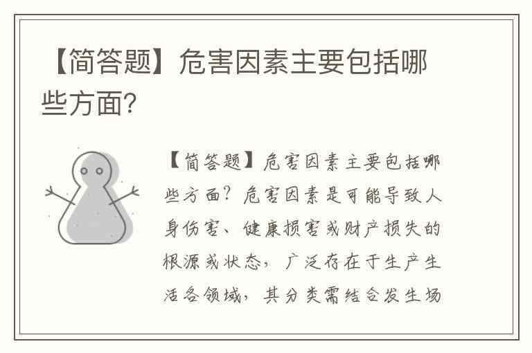 危害因素是可能导致人身伤害、健康损害或财产损失的根源或状态,广泛存在于生产生活各领域,其分类需结合发生场景与作用机制。按性质可分为四大核心类别,每类包含具体风险表现与典型案例: