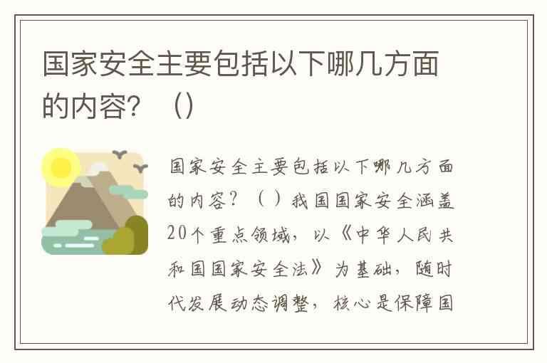 我国国家安全涵盖20个重点领域,以《中华人民共和国国家安全法》为基础,随时代发展动态调整,核心是保障国家政权、主权、统一和领土完整等重大利益处于安全状态。以下是各领域的核心内容: