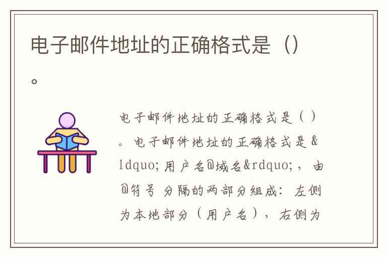 电子邮件地址的正确格式是 “用户名@域名”,由 @符号 分隔的两部分组成:左侧为本地部分(用户名),右侧为域名部分,二者缺一不可且无空格或特殊符号(除允许的特定字符外)。