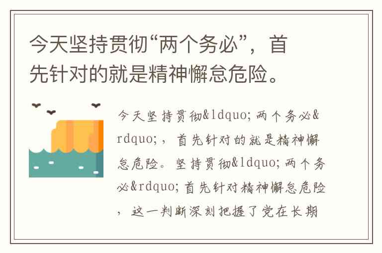 今天坚持贯彻“两个务必”,首先针对的就是精神懈怠危险。