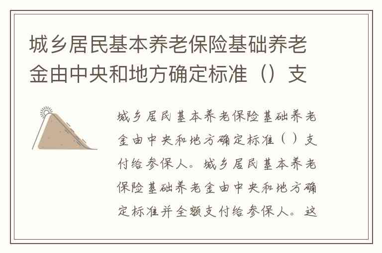 城乡居民基本养老保险基础养老金由中央和地方确定标准()支付给参保人。