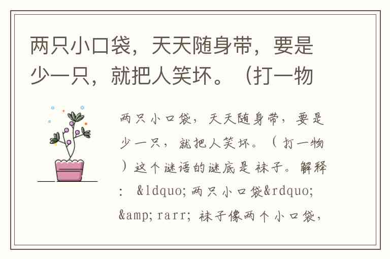 解释: “两只小口袋” → 袜子像两个小口袋,分别套在脚上。