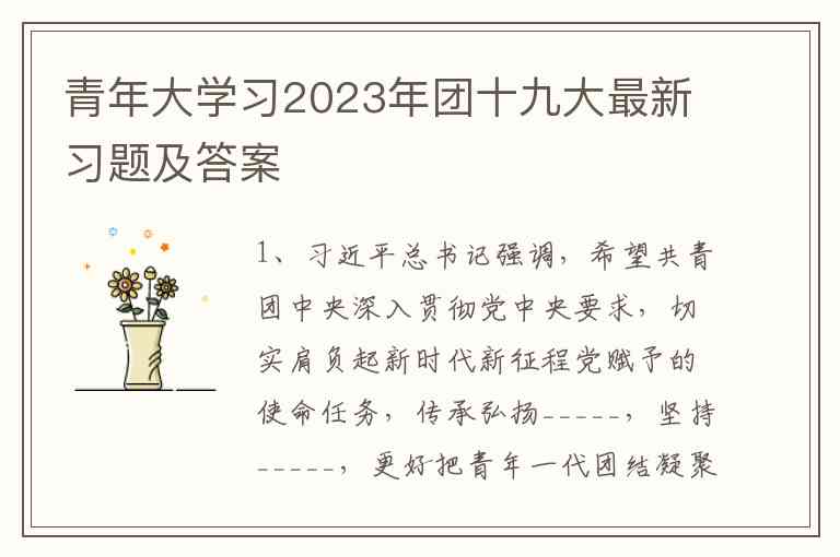1、习近平总书记强调,希望共青团中央深入贯彻党中央要求,切实肩负起新时代新征程党赋予的使命任务,传承弘扬_____,坚持_____,更好把青年一代团结凝聚在党的周围,为推进_____、_____伟业接续奋斗。
